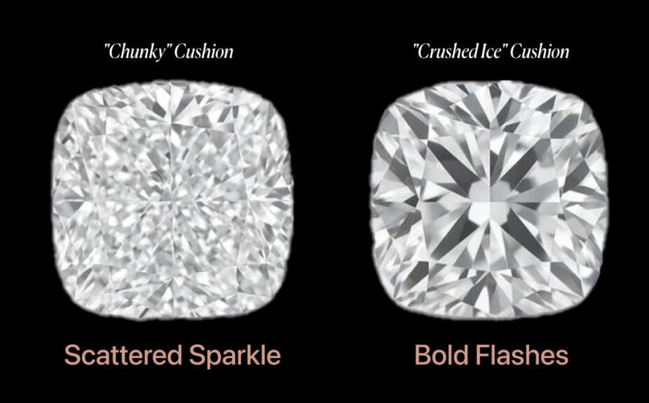 One will have broad, fiery flashes, and the other will have a thousand points of splintery, glittery light. Why? Because the cushion cut has two distinct “personalities.”