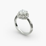 This antique looking engagement ring captures the charm of a bygone era with its intricate Pavé accented lace work, delicately swirling to create an old-world estate aesthetic. The artistry and craftsmanship bring an elegant vintage touch, making it the perfect choice for those who admire timeless designs.
