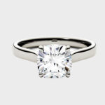 Elegant Sparkle Under $1000: This stunning solitaire engagement ring features a 7.5mm cushion-cut Moissanite, equivalent to a 2.00-carat diamond. Expertly crafted in 14K rhodium-plated white gold, its classic four-prong setting enhances the brilliance of the stone, creating a timeless look. The band tapers beautifully, measuring approximately 1.45mm at its narrowest and 2.33mm at its widest. Perfect for those seeking luxury and value, this ring is a testament to lasting beauty and affordability.