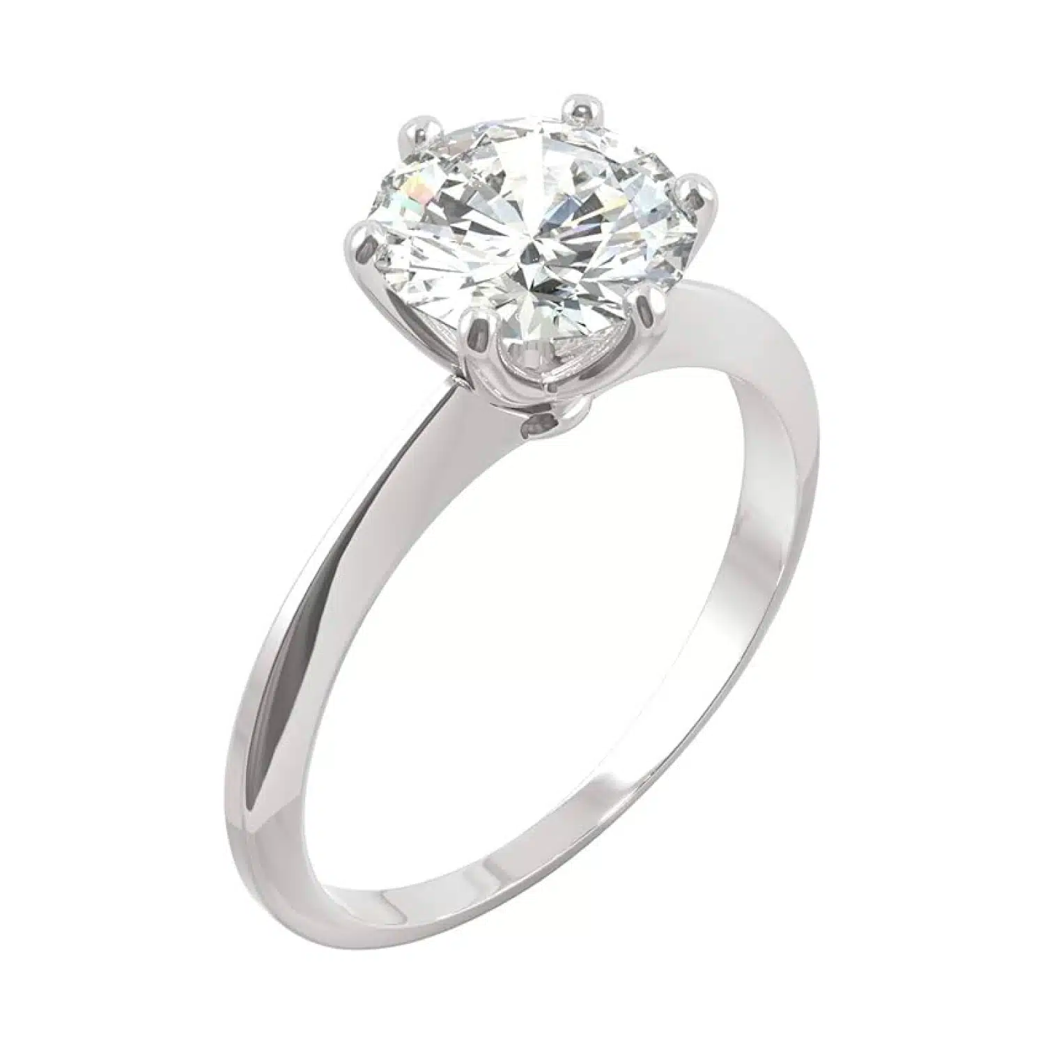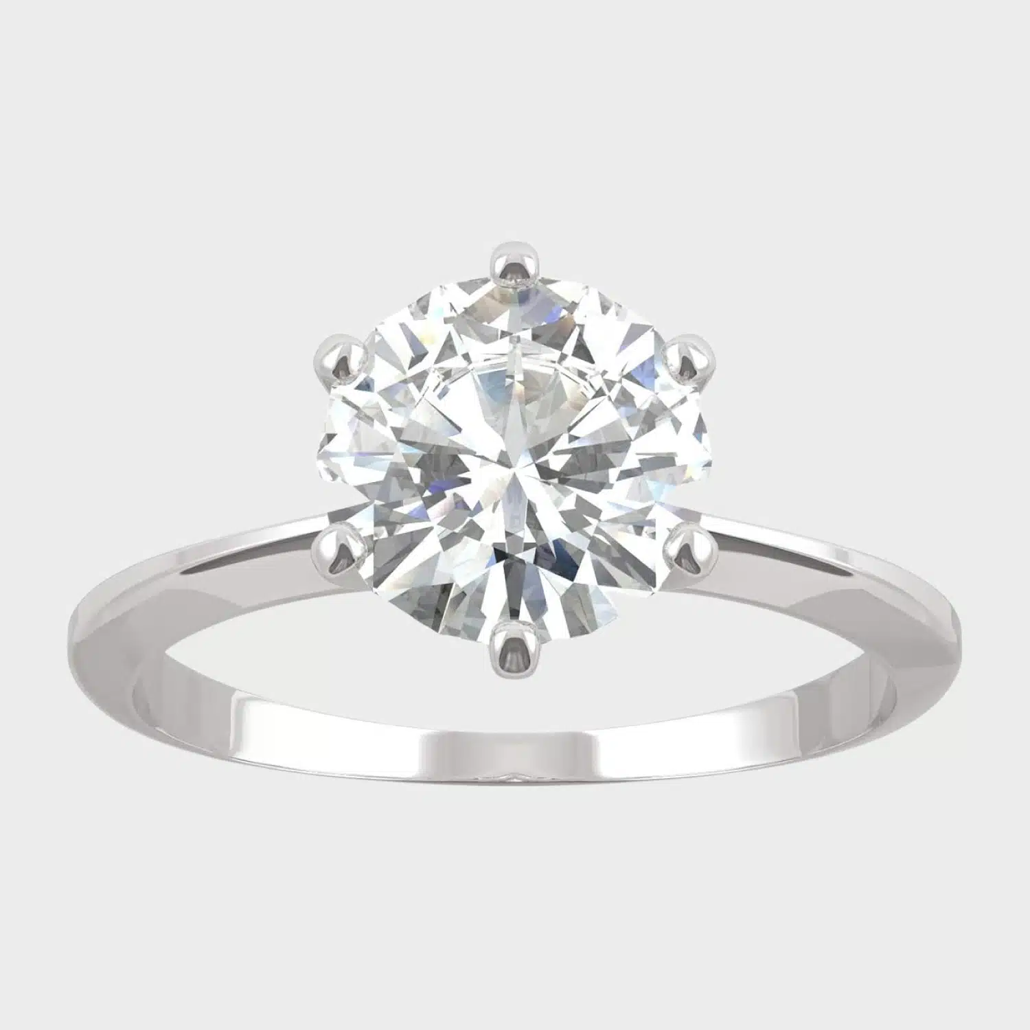 Timeless Simplicity: This exquisite engagement ring features an 8mm round brilliant-cut Moissanite by Charles & Colvard, secured in a classic six-prong setting. With a total diamond equivalent weight (DEW) of 1.90 carats, it offers brilliance and sophistication. Perfect for those seeking affordable luxury, this design is a stunning centerpiece for life’s most special moments.