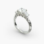 These stunning pear shaped 3 stone engagement rings highlight an intricate, floral-inspired handmade head assembly, offering a unique and sophisticated touch to the classic three-stone diamond design. Whether you’re searching for pear shaped engagement rings or a statement piece like a 3 carat engagement ring, this design ensures a lasting impression.